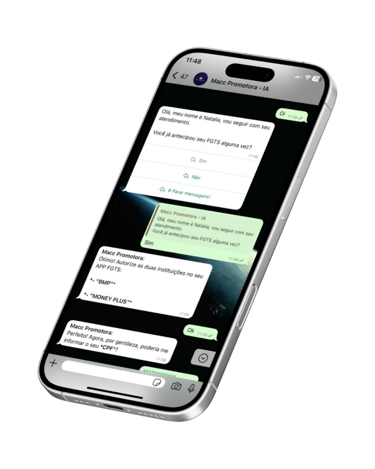 MACC PROMOTORA – CNPJ: 45.478.405/0001-78 é uma plataforma digital que atua como correspondente bancário para facilitar o processo de contratação de empréstimos. Como correspondente bancário seguimos as diretrizes do Banco Central do Brasil, nos termos da Resolução nº. 3.954, de 24 de fevereiro de 2011. Toda avaliação de crédito será realizada conforme a política de crédito da Instituição Financeira escolhida pelo usuário. Antes da contratação de qualquer serviço através de nossos parceiros, você receberá todas as condições e informações relativas ao produto a ser contratado, de forma completa e transparente. As taxas de juros, margem consignável e prazo de pagamento praticados nos empréstimos com consignação em pagamento dos Governos Federais, Estaduais e INSS observam as determinações de cada convênio, bem como a política de crédito da Instituição Financeira a ser utilizada. Informações adicionais relativas ao Empréstimo Consignado: mínimo 36 meses e máximo 96 meses. Custo Efetivo Total (CET): mínimo de 22,80% e máximo de 32,60% ao ano. Exemplo de um empréstimo consignado para Governo Federal: Empréstimo de R$ 4.649,47 para pagar em 8 anos (96 meses). Total de 96 parcelas de R$ 100,00. Valor total a pagar de R$ 9.600,00 com uma taxa de juros de 1,57% ao mês + IOF (R$ 150,36 equivale a 3,23%). CET de 1,71% ao mês (22,86% ao ano)